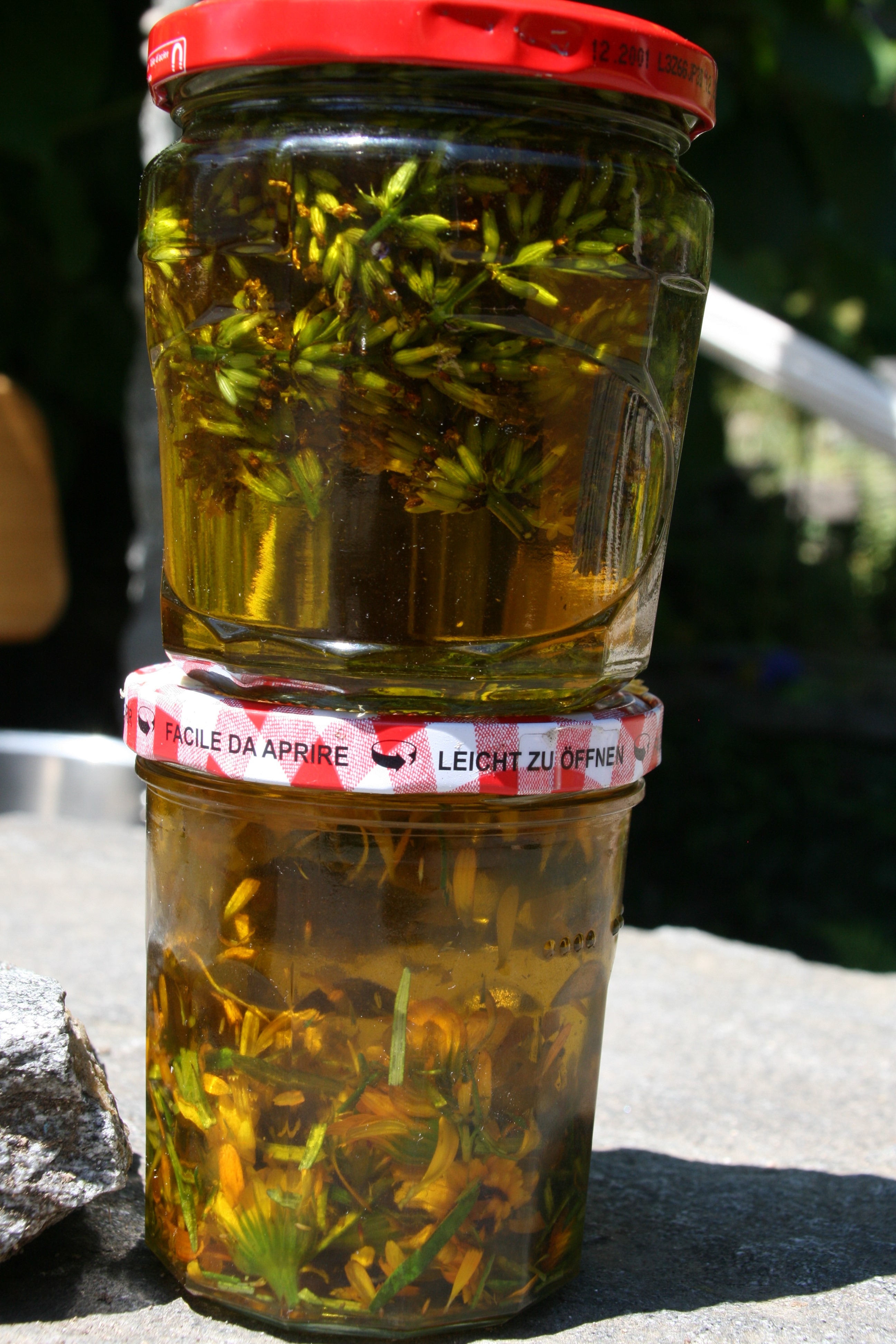 - Kräuterölauszüge: Für besondere Pflegewirkungen setzen wir Kräuter in Öl an und lassen sie mehrere Wochen ziehen, um ihre wertvollen Inhaltsstoffe zu extrahieren.