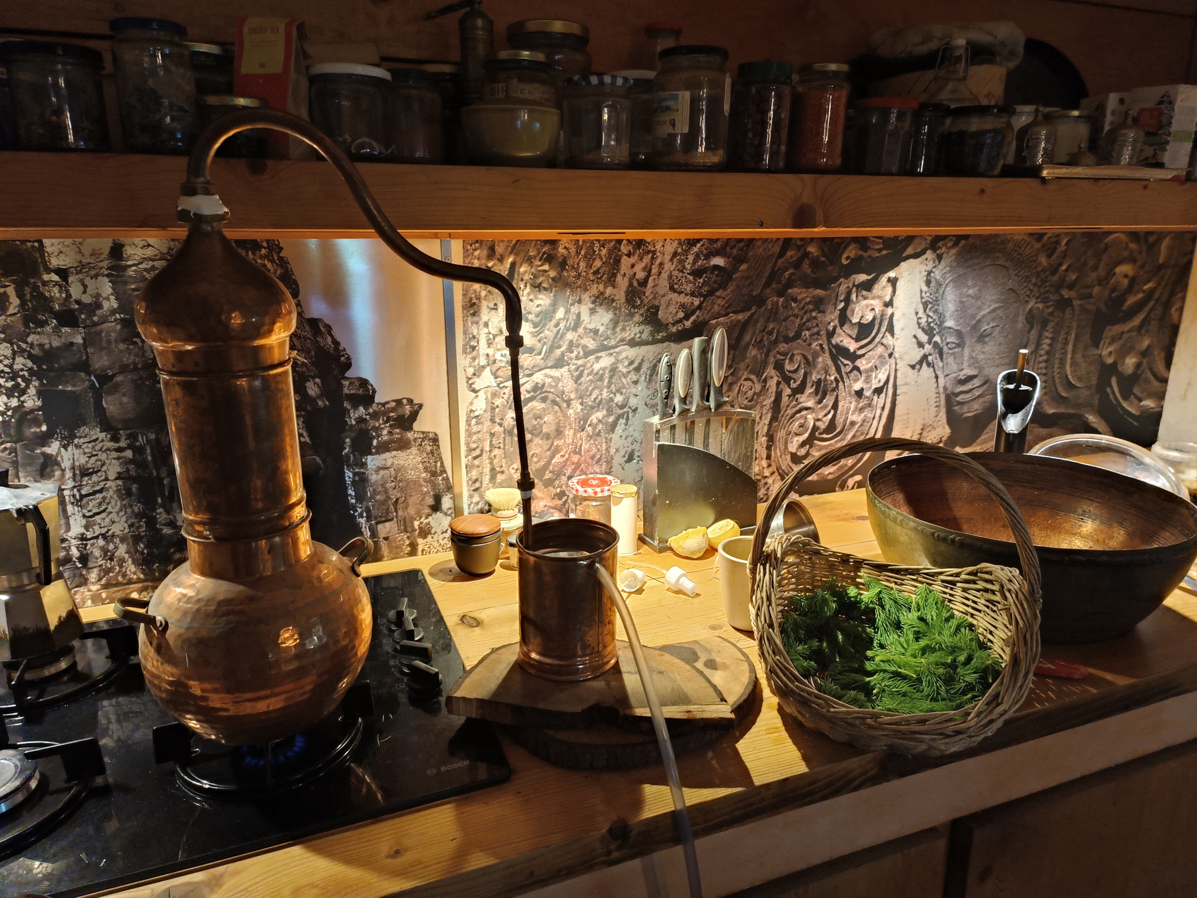 Ein besonderes Highlight unserer Küche ist die Spüle. Statt eine neue zu kaufen, haben wir einen Teil eines alten Kupferboilers umfunktioniert.